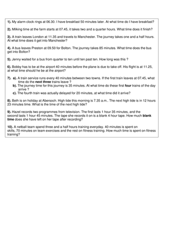 Year 4/5 time word problems by hilly100m - Teaching ... from d1uvxqwmcz8fl1.cloudfront.net