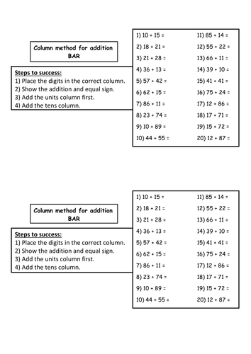 All items are dynamic (can regenerate unlimited problems) unless otherwise indicated. Click here to go to our column addition tutorial where you can see full worked examples of column additions from level one: Differentiated for children working towards age related expectations (are), at are and at greater.