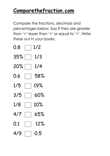 Now, the easier way is to convert them into a fraction, i.e. Less obvious divisors may require fall back to dividing the numerator by the denominator to get a decimal result, and shifting the decimal place to get the corresponding percentage. Each worksheet has fractions to express as decimals and percentages. Graphics, fractions, and word form) given.