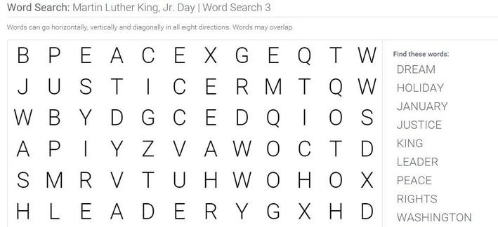 Here's a unique valentine word search for your party, your classroom. While any time of year is a good time to learn about dr. Print out this martin luther king, jr. You have chosen the 'martin luther king, jr.' premade word list.