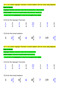 These worksheets help teach students about mixed numbers and improper fractions.