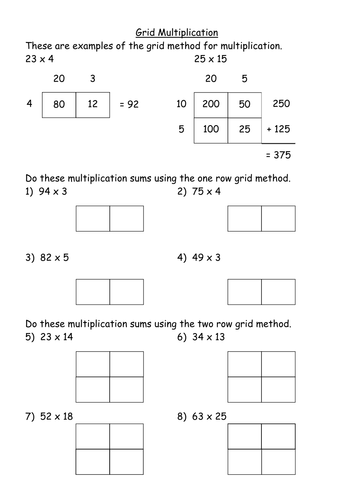 A multiplication grid looks like a box set of numbers where you multiply two numbers making each two numbers multiplied by making multiplication boxes. A multiplication algorithm is an algorithm (or method) to multiply two numbers. Grid problem multiplication worksheets for introducing multiplication and discovering patterns in multiplication problems (answer keys to these sheets make a great multiplication fact chart!)