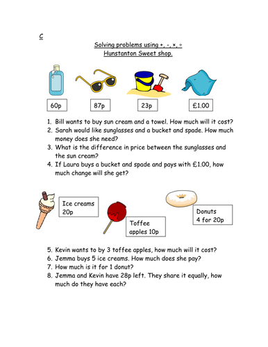 These word problems are relatively short, requiring minimal reading. The word problems also involve money and finding 10%. The worksheets on this page combine the skills necessary to solve all four types of problems covered previously (addition word problems, subtraction word problems, multiplication word problems and division word. There are basically four operations: